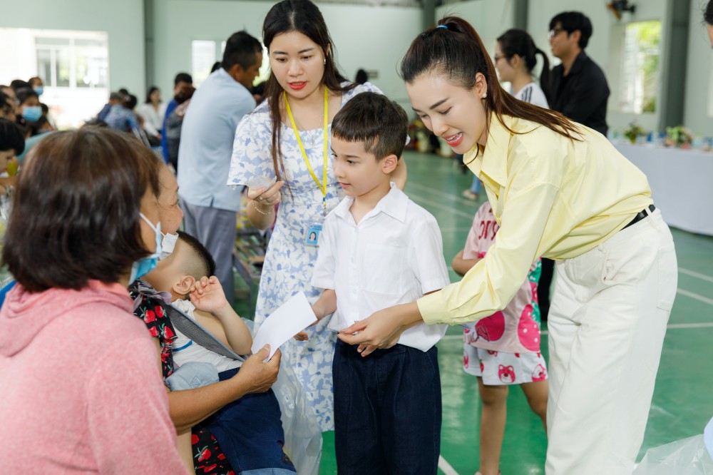 Đây là lần thứ tư Hoàng Oanh trở lại nơi này. Cô nói mỗi lần về đây đều ngập tràn những cảm xúc đặc biệt khi được thấy những em nhỏ mình từng gặp gỡ, giúp đỡ dần trưởng thành. Cùng đồng hành với Hoàng Oanh trong hành trình lan tỏa yêu thương lần này còn có bố mẹ và cậu con trai Max. Đây cũng là lần đầu tiên bé Max theo chân mẹ trong một chuyến đi từ thiện.