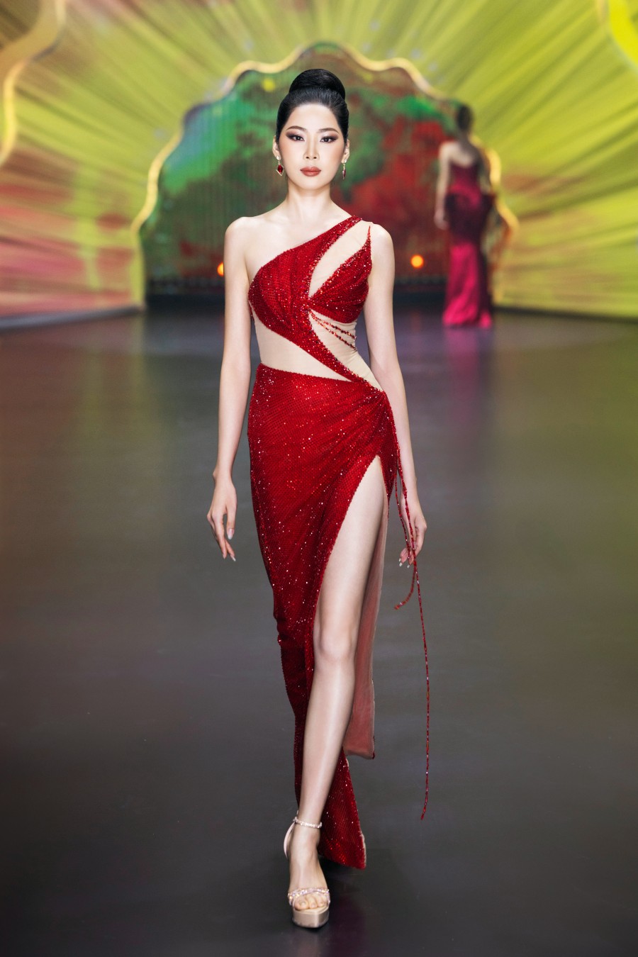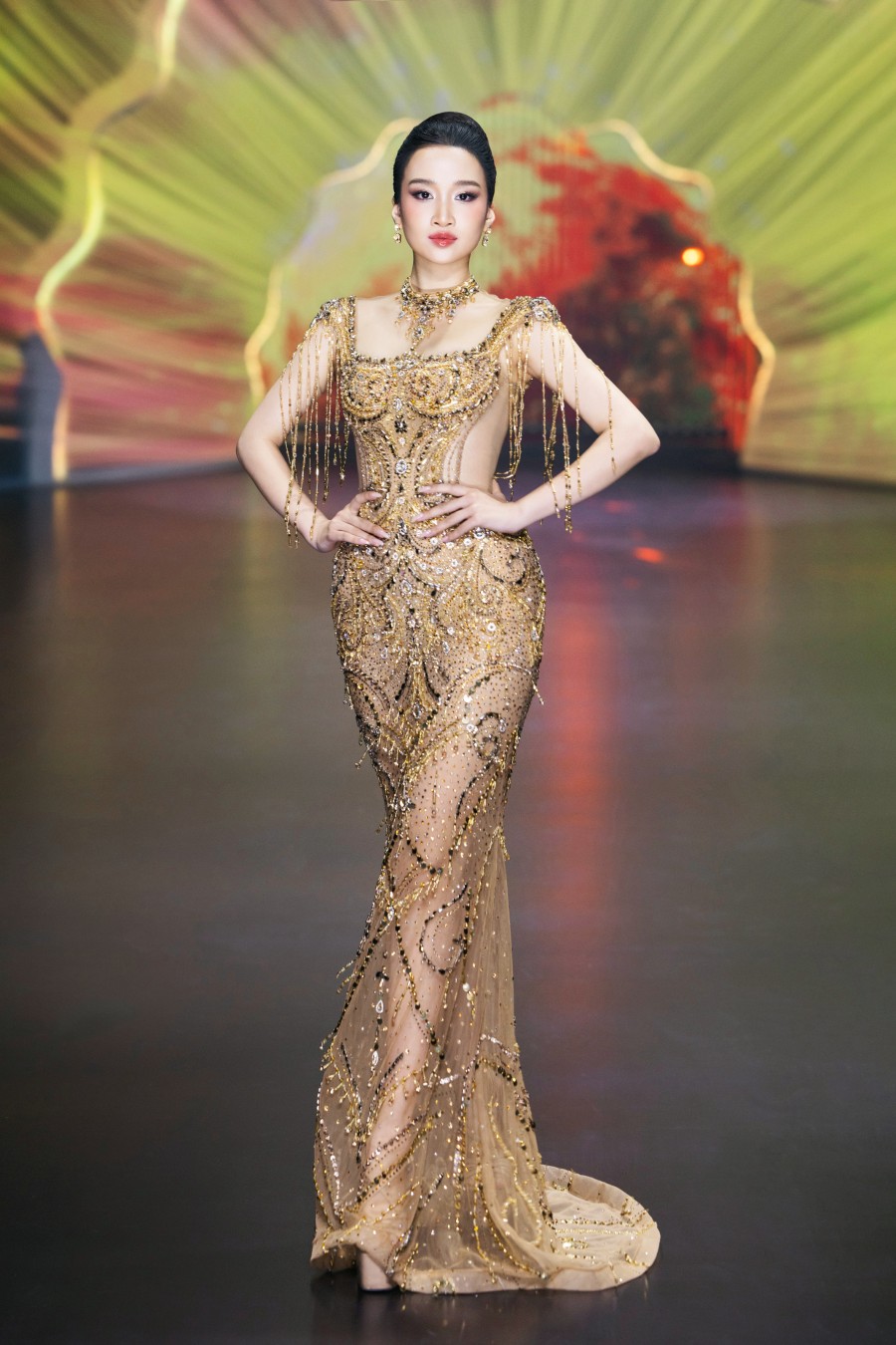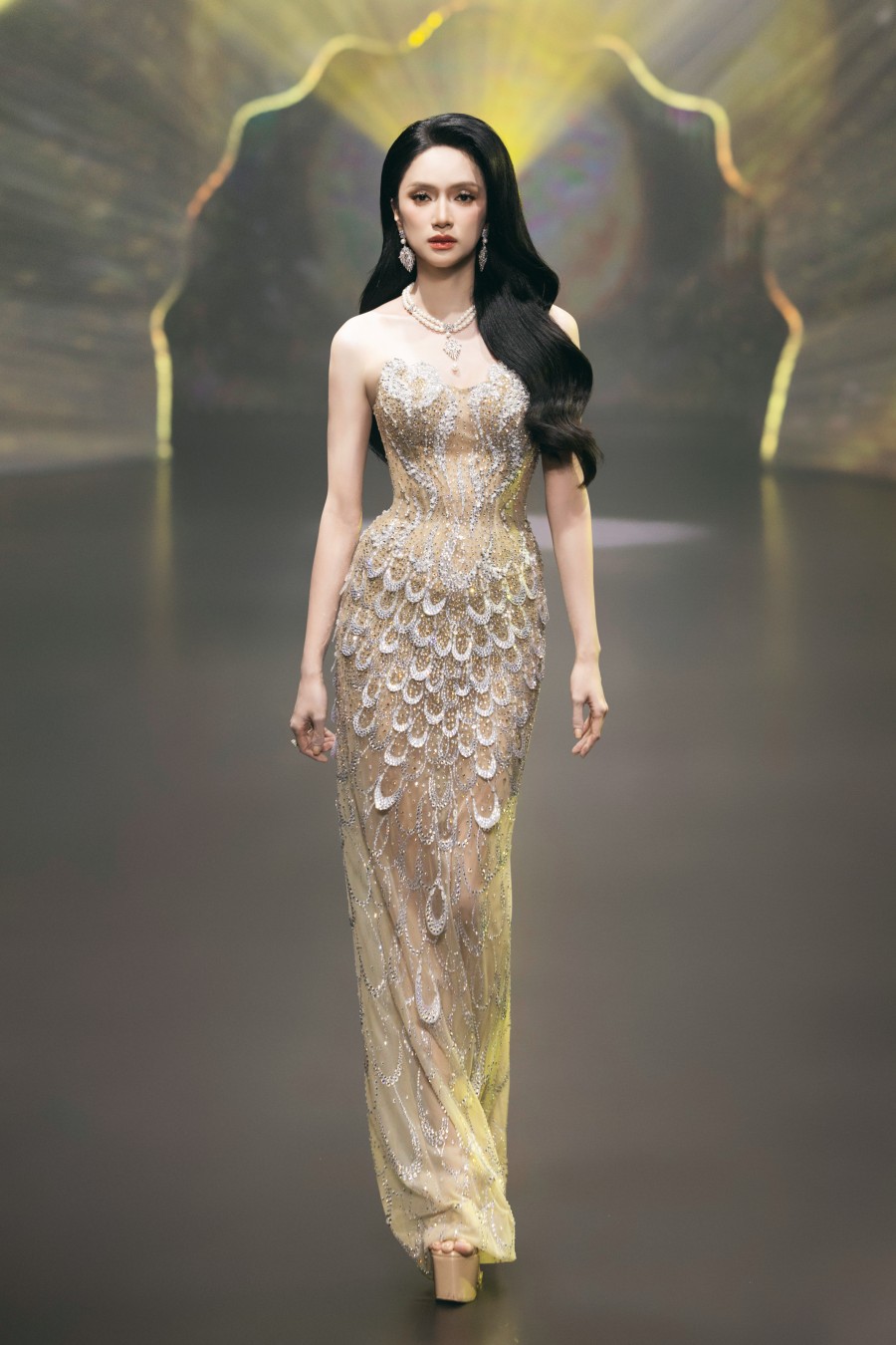 Sàn catwalk đêm qua quy tụ nhiều nhiều hoa hậu, á hậu trong nước và quốc tế trình diễn. Vị trí first face được Nguyễn Minh Tuấn “chọn mặt gửi vàng” cho Hoa hậu Hương Giang. Trong khi đó, Á hậu Miss Universe 2023 - Vẻ đẹp vượt thời gian - đảm nhận vai trò vedette cho bộ sưu tập mới của Nguyễn Minh Tuấn.