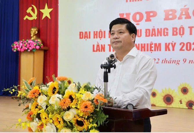 Trưởng Ban Tuyên giáo và Dân vận Tỉnh ủy Tống Phước Trường thông tin về Đại hội.
