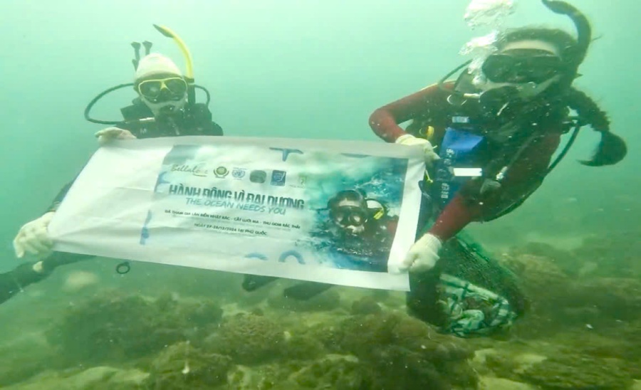 Bella Vũ lặn biển nhặt rác ở Phú Quốc