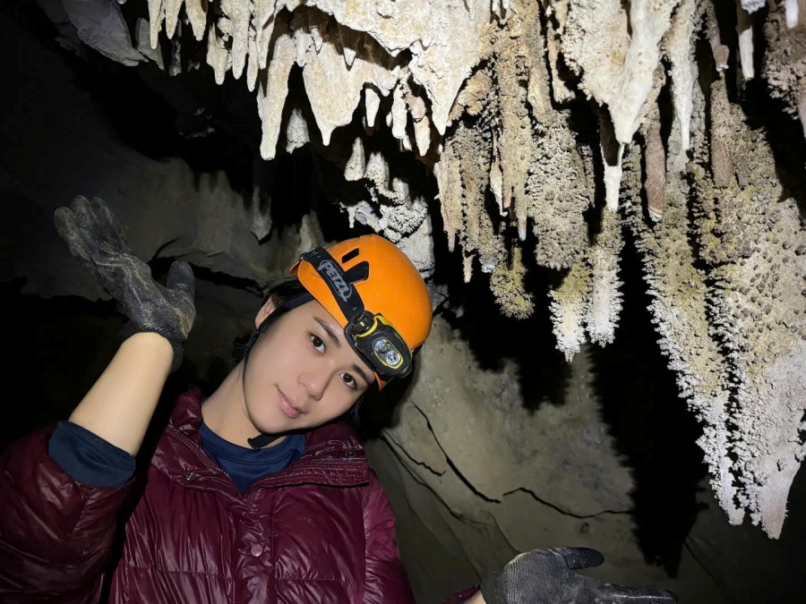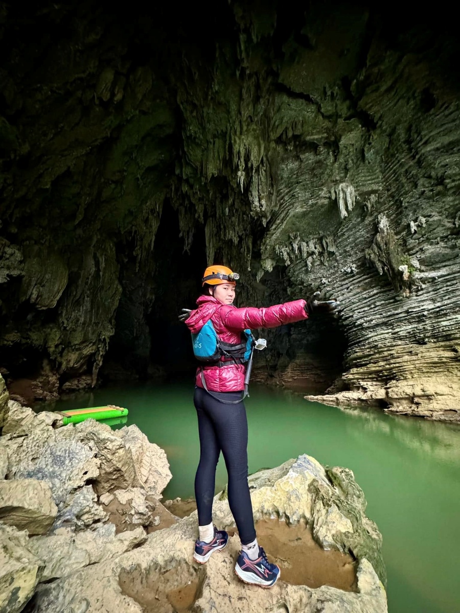 Trước đó, Bella Vũ cùng gia đình đã có chuyến khám phá hang động Tú Làn ở Quảng Bình.