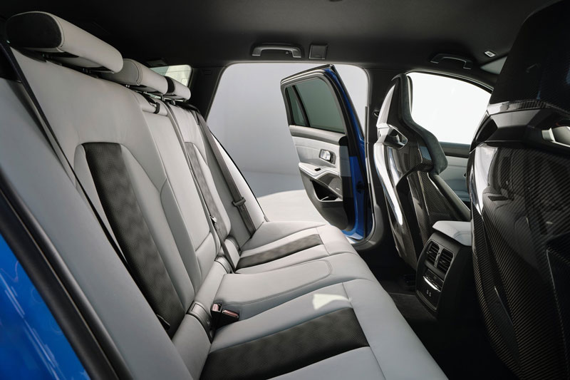 Bên trong khoang cabin, ghế sợi carbon M được thiết kế để mang lại cảm giác ôm sát nhưng vẫn thoải mái, phù hợp cho cả đường đua lẫn hành trình dài. Khoang hành lý dung tích 500 lít, có thể tăng lên 1.500 lít khi gập hàng ghế sau. Cửa sau mở độc lập giúp tăng tính tiện dụng, cho phép người dùng dễ dàng mang theo đồ cắm trại, hành lý hoặc thiết bị thể thao mà không ảnh hưởng đến trải nghiệm vận hành.