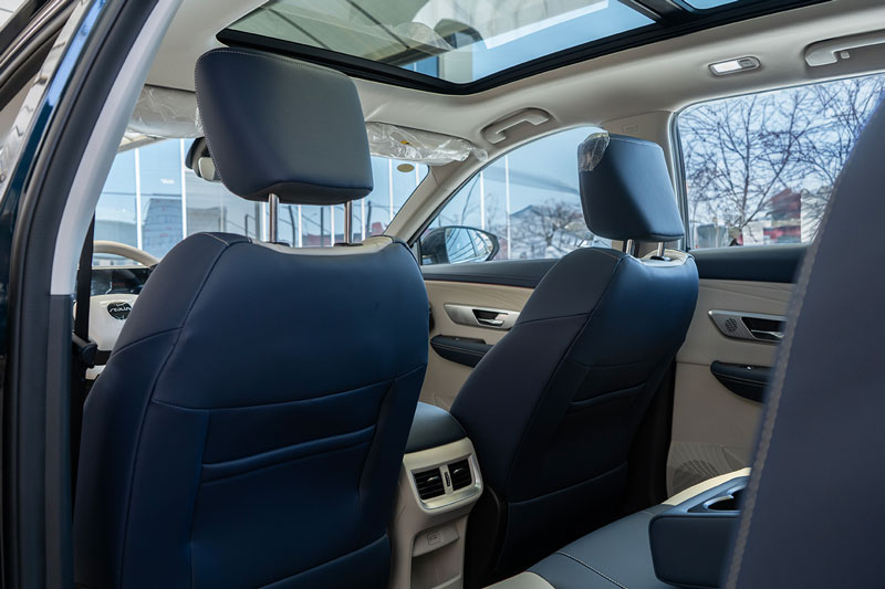 Ghế bọc da Nappa không trọng lực với ghế lái chỉnh điện 6 hướng, làm mát và sưởi. Điều hòa tự động kèm cửa gió hàng ghế sau và bộ lọc bụi mịn PM2.5. Cửa sổ trời toàn cảnh với rèm che nắng. Dàn âm thanh Jamo 10 loa, sạc không dây và nhiều cổng USB tiện lợi.