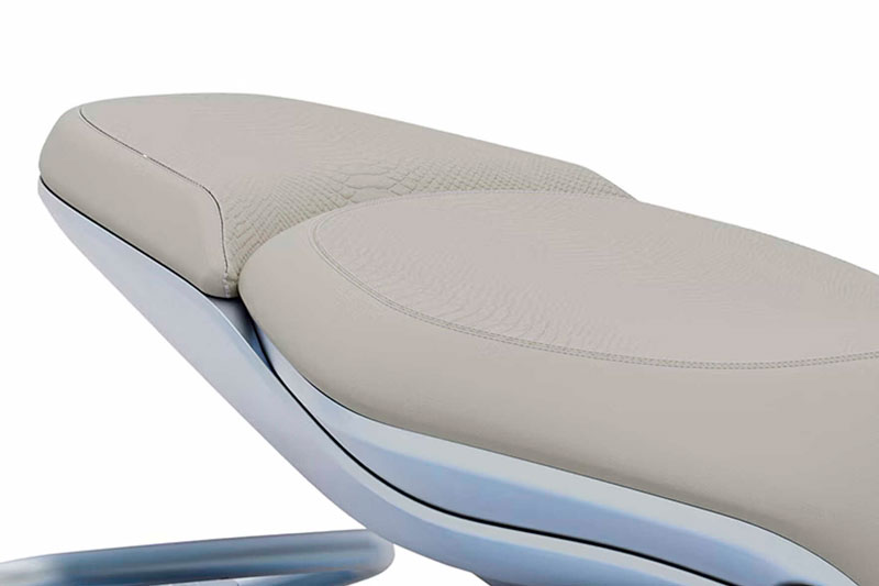 Vespa 946 Snake gây ấn tượng với lớp sơn màu xanh ngọc lam óng ánh, gợi lên vẻ đẹp tinh khiết và cứng cáp của khung cảnh tuyết phủ. Lấy cảm hứng từ loài rắn, các chi tiết như tay lái và yên xe được thiết kế mô phỏng kết cấu mềm mại của da động vật. Đặc biệt, hình ảnh rắn mạ crôm xuất hiện trên nắp bình xăng và tấm chắn bùn, góp phần tạo nên sự kết hợp hoàn hảo giữa sức mạnh, sự duyên dáng và tính sáng tạo.