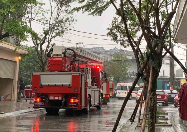 Nhận tin báo, lực lượng Cảnh sát Phòng cháy chữa cháy và Cứu hộ cứu nạn Công an tỉnh Hà Tĩnh nhanh chóng điều ba xe chuyên dụng cùng hàng chục cán bộ chiến sĩ đến hiện trường, triển khai dập lửa và hỗ trợ sơ tán người dân. Một xe cứu thương được bố trí bên dưới tòa nhà để ứng phó tình huống khẩn cấp.