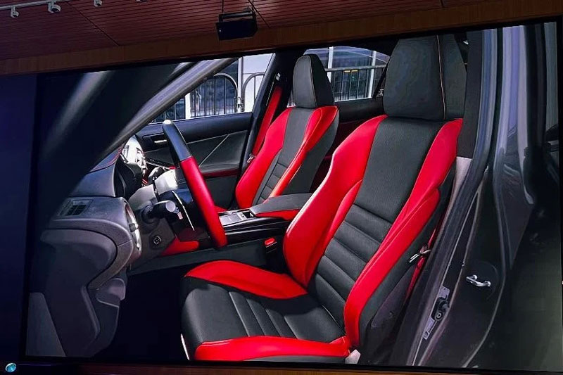 Bên trong khoang lái, Lexus IS 500 Ultimate Edition tiếp tục khiến dân chơi xe không thể ngó lơ với cách phối màu nội thất đỏ Circuit đan xen đen tuyền cá tính. Ghế ngồi được bọc vải NuLuxe cao cấp kết hợp da Ultrasuede, trong khi vô-lăng được lấy cảm hứng trực tiếp từ siêu phẩm Lexus LFA – chiếc siêu xe vang danh một thời của thương hiệu Nhật. Núm cần số được bọc da dập nổi, dây an toàn nổi bật với tone đỏ rực và không thể thiếu tấm plaque kim loại đánh số thứ tự từ 001 đến 500 để khẳng định rõ tính giới hạn và độc quyền.