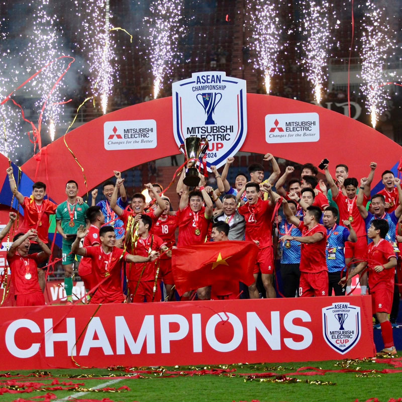 ĐT Việt Nam đã xuất sắc đánh bại ĐT Thái Lan với tỷ số 3-2 ở trận chung kết lượt về ASEAN Cup 2024 để giành chức vô địch giải đấu này với tổng tỷ số sau 2 lượt trận đi và về là 5-3. Ảnh: TPO