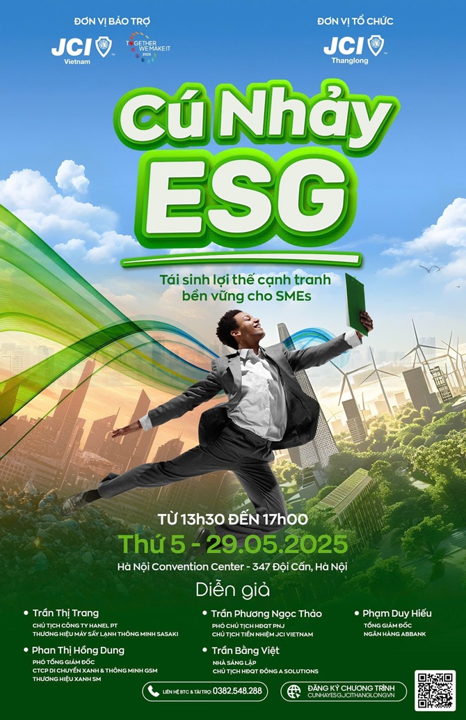 Thông tin sự kiện: Thời gian: 13h30, ngày 29/5/2025 Địa điểm: Hà Nội Convention Center, 347 Đội Cấn, Ba Đình, Hà Nội Đăng ký tham gia:https://cunhayesg.jcithanglong.vn Liên hệ truyền thông/tài trợ: Ông Nguyễn Trường Sinh – Giám đốc sự kiện – 0382 548 288 |
