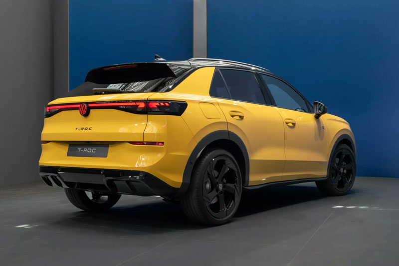Về thiết kế, Volkswagen T-Roc 2026 sở hữu ngoại hình mới hiện đại và thể thao hơn. Phiên bản R-Line nổi bật với màu vàng Canary ấn tượng, trong khi phiên bản tiêu chuẩn có màu đỏ Fire Red. Cụm đèn trước và sau được thiết kế liền mạch, kết hợp logo VW phát sáng phía trước (tùy chọn) và logo màu đỏ phía sau, cùng đèn pha ma trận LED IQ.Light cao cấp.