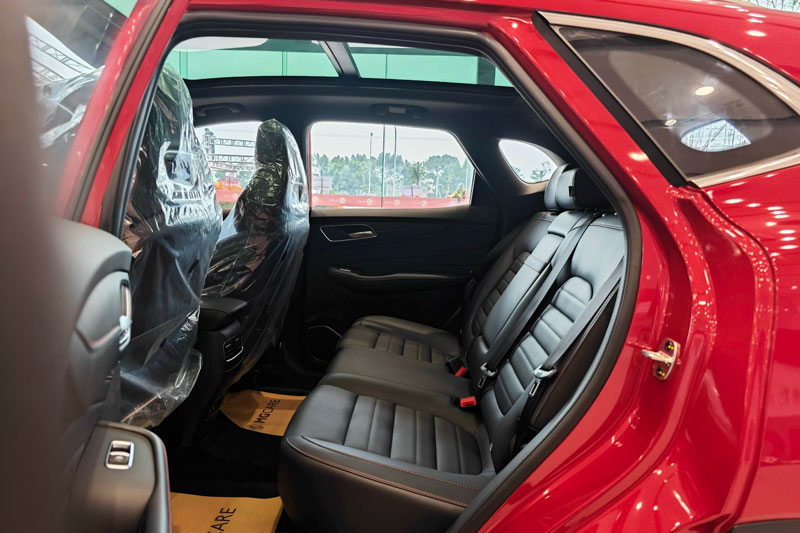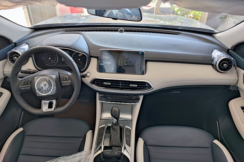 Bên trong cabin, MG HS chăm chút đến từng chi tiết. Ghế thể thao bọc da, hàng ghế trước có tính năng điều chỉnh điện 6 hướng và sưởi. Vô-lăng 3 chấu D-cut tích hợp lẫy chuyển số, cụm đồng hồ là màn hình Full Virtual Dashboard 12 inch. Màn hình giải trí cảm ứng 10 inch kết nối với Android Auto và Apple CarPlay, đồng thời có thêm nhiều tính năng như hệ thống lọc không khí, dàn âm thanh Bose 8.1, cửa sổ trời toàn cảnh, đèn viền nội thất có thể tùy chỉnh, và cửa gió điều hoà cho hàng ghế sau.