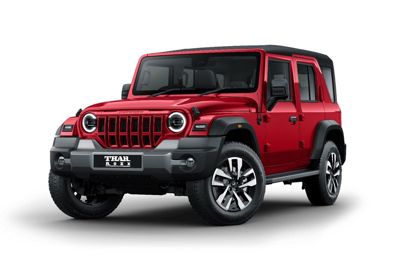 Thar Roxx vẫn giữ nguyên DNA “chiến binh off-road” của dòng Thar truyền thống với dáng hình hộp khỏe khoắn, khung gầm cao và những đường nét đậm chất cơ bắp. Tuy nhiên, phiên bản 5 cửa mới có chiều dài cơ sở được kéo dài lên 2.450 mm, giúp nội thất rộng rãi hơn đáng kể cho cả hành khách và khoang hành lý. Xe có kích thước tổng thể dài 3.985 mm, rộng 1.820 mm, cao 1.844 mm, mang đến cảm giác vững chãi và cân đối.