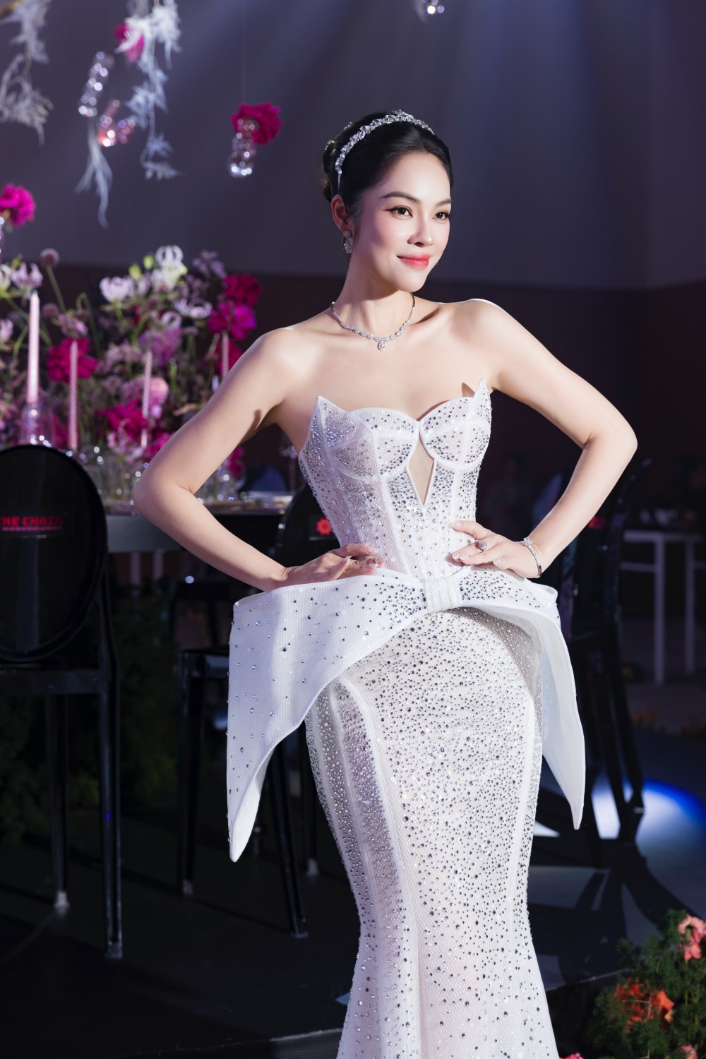 Ở một thiết kế khác, nữ diễn viên Ải mỹ nhân trong thiết kế mới của JoliPoli không chỉ đơn thuần là một khách mời, mà cô còn hóa thân thành một nữ thần thực thụ. Những đường cắt may tinh xảo, chất liệu cao cấp cùng cách đính kết tỉ mỉ đã tôn vinh trọn vẹn vóc dáng quyến rũ và thần thái sang trọng của nữ diễn viên. Mỗi chiếc đầm JoliPoli khoác lên người Dương Cẩm Lynh đều giúp cô tỏa sáng một cách đặc biệt, làm nổi bật lên vẻ đẹp mặn mà, đầy cuốn hút và sự tự tin vốn có.