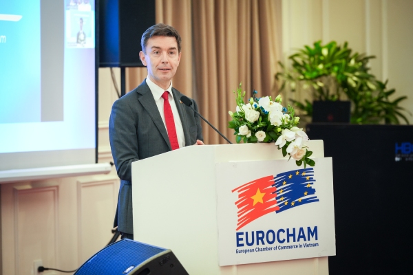 "EuroCham cung cấp cho chúng tôi những hiểu biết sâu sắc về môi trường kinh doanh, phản ánh rõ các mối quan tâm của cộng đồng doanh nghiệp, đồng thời chia sẻ tầm nhìn về một Việt Nam với hệ thống pháp lý minh bạch, an toàn và hấp dẫn hơn đối với các nhà đầu tư cũng như doanh nghiệp xuất khẩu EU. Đồng hành cùng EuroCham, chúng tôi hướng tới việc xây dựng một môi trường kinh doanh không chỉ thuận lợi mà còn bền vững – nơi doanh nghiệp và dòng vốn đầu tư có thể phát triển mạnh mẽ", Đại sứ Guerrier nói.