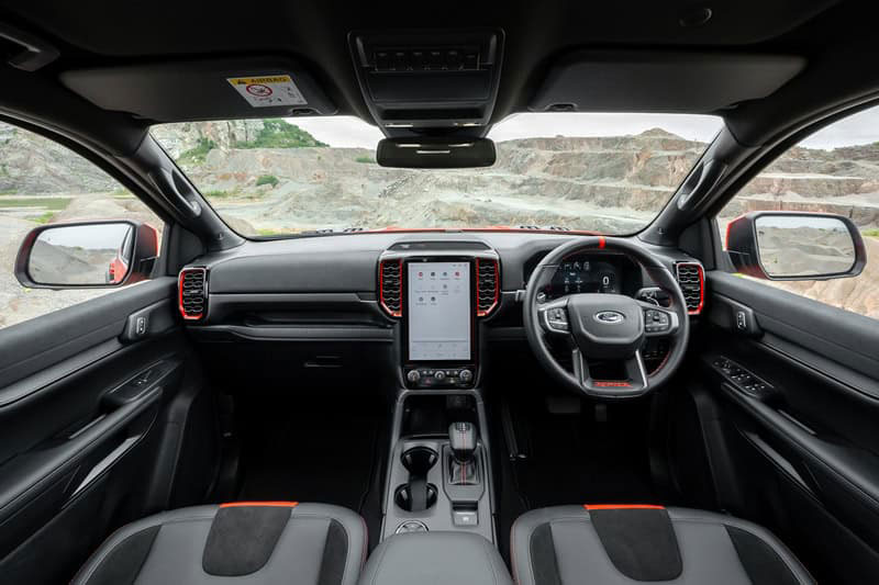 Khoang nội thất hiện đại với màn hình đồng hồ kỹ thuật số 12,4 inch, màn hình giải trí trung tâm 12 inch hỗ trợ Apple CarPlay và Android Auto không dây, hệ thống âm thanh cao cấp Bang & Olufsen, ghế da Raptor chỉnh điện 10 hướng, sạc không dây, 4 cổng USB, điều hòa tự động hai vùng cho cả hàng ghế sau cùng hệ thống đèn viền nội thất.