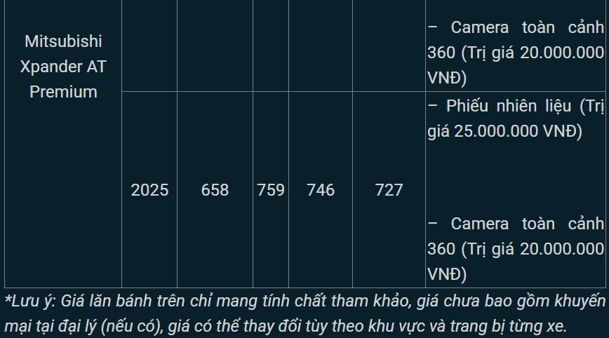 Tham khảo giá niêm yết và lăn bánh tạm tính của Mitsubishi Xpander cập nhập mới nhất tháng 2/2025: