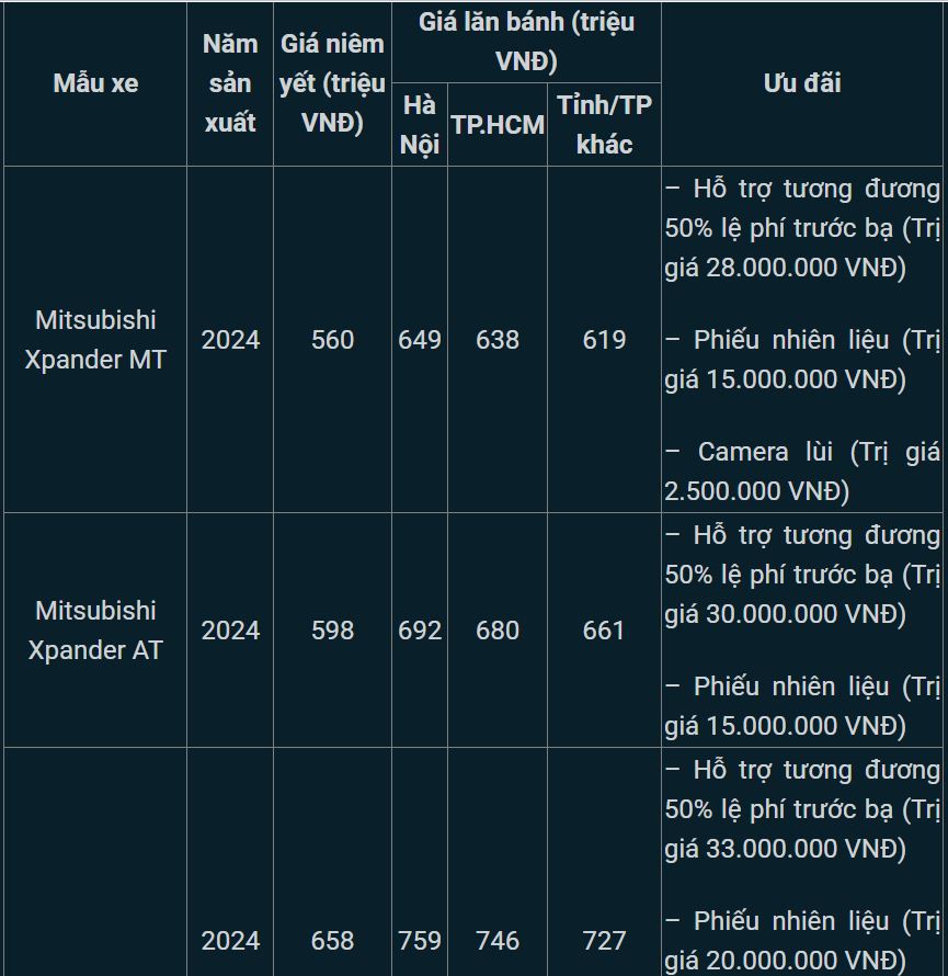>> Xem thêm: Bảng giá xe Mitsubishi tháng 2/2025: Giảm giá mạnh