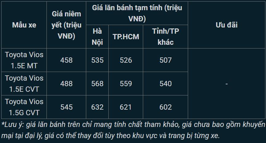 >> Xem thêm: Giá lăn bánh Toyota Vios đầu tháng 1/2025 cực rẻ, hạ knock-out Hyundai Accent và Honda City
