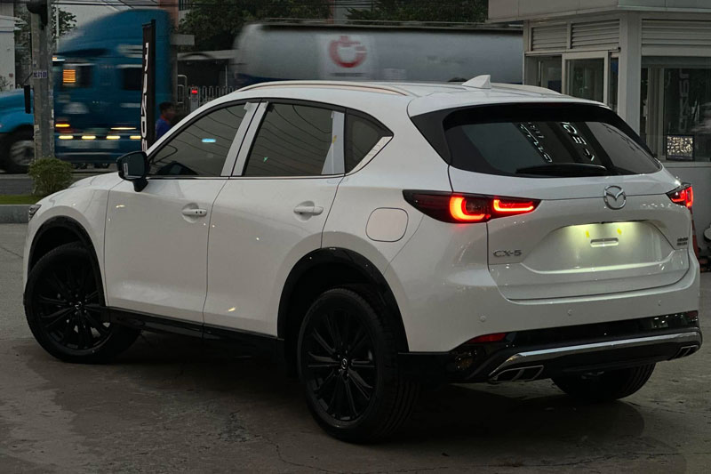 Bên hông xe, Mazda CX-5 nổi bật với những đường gân dập nổi khoẻ khoắn, bộ mâm 5 chấu kép màu khói xám đầy cuốn hút. Gương chiếu hậu không chỉ tích hợp đèn báo rẽ mà còn được trang bị camera, mang lại sự tiện lợi tối đa cho người lái.Phía đuôi xe, cụm đèn hậu LED được thiết kế lại tinh tế và hiện đại hơn. Cản sau cũng được thu gọn để tăng tính thể thao, trong khi cặp ống xả được làm mới giúp tổng thể xe trở nên cân đối và thẩm mỹ hơn.