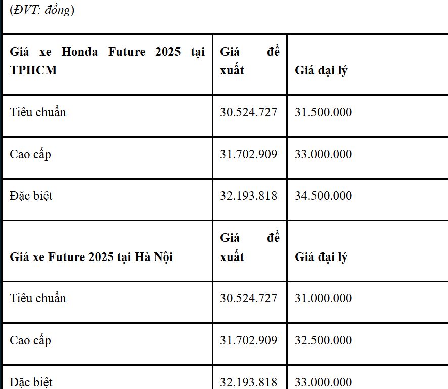 Bảng giá xe Honda Future 125 FI 2025 mới nhất tại đại lý: