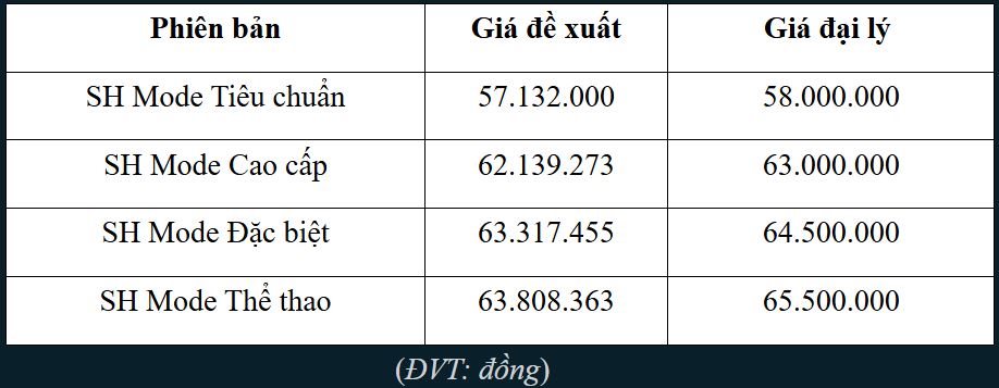 Hiện tại, SH Mode 2025 đã có mặt tại đại lý và được chào bán với giá khá hấp dẫn, các phiên bản chỉ chênh với giá đề xuất từ 500 nghìn – 1,5 triệu đồng, thậm chí có đại lý bán ngang giá đề xuất. Sở dĩ mức giá trên được coi là hấp dẫn bởi trước đó, SH Mode từng là một trong những mẫu xe đội giá cao nhất Việt Nam, có thời điểm đại lý bán chênh hơn 10 triệu đồng so với giá đề xuất.