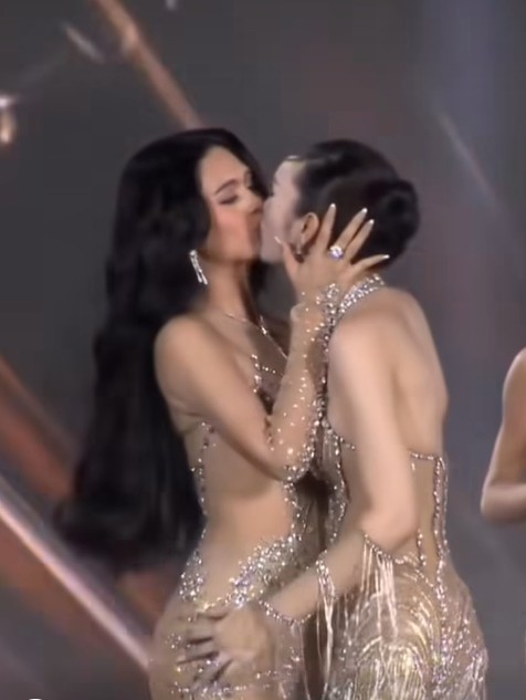 Cảnh tượng này nhanh chóng trở thành tâm điểm bàn tán trên mạng xã hội, khiến nhiều người ngỡ ngàng và lập tức viral. Không ít khán giả cho rằng màn thể hiện tình cảm của hai người đẹp đã "chiếm sóng" khoảnh khắc đăng quang của người chiến thắng, tạo nên một cú “plot twist” không ai ngờ tới.