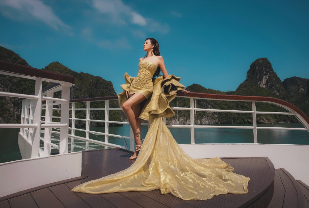 Bộ ảnh được thực hiện trên du thuyền sang trọng giữa Vịnh Hạ Long, kỳ quan thiên nhiên thế giới, tạo nên sự kết hợp độc đáo giữa thời trang cao cấp và cảnh sắc thiên nhiên hùng vĩ.