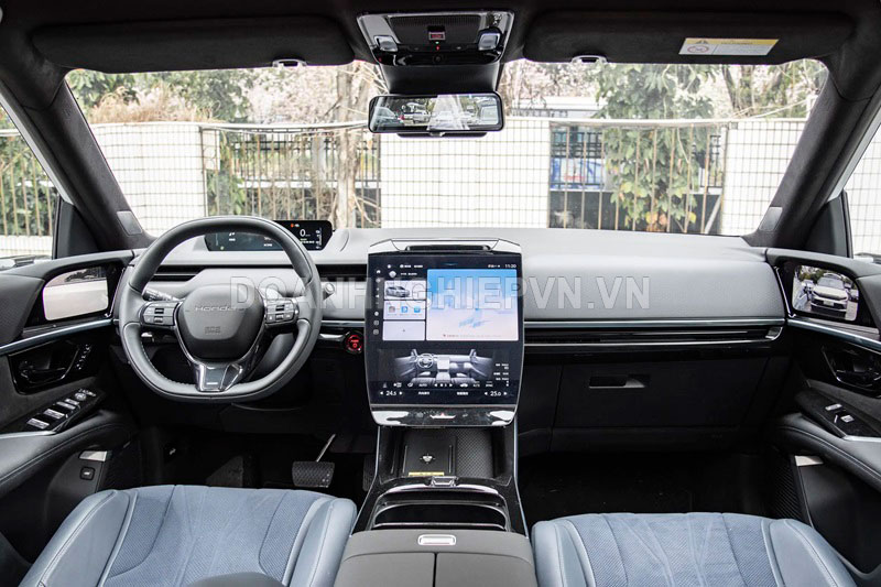 Không chỉ ngoại thất, khoang nội thất của Honda P7 cũng được hiện đại hóa với màn hình cảm ứng 12,8 inch đặt ở trung tâm bảng điều khiển. Đi kèm là cụm đồng hồ kỹ thuật số siêu mỏng đặt ngay phía sau vô-lăng ba chấu hai tông màu, mang lại trải nghiệm lái xe công nghệ cao.