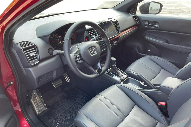 Nội thất ghế bọc da đen cùng đường viền chỉ đỏ (RS) tương phản như một điểm chấm phá hấp dẫn thị giác, góp phần tôn lên sự mạnh mẽ và phóng khoáng cho chủ nhân. Nhằm mang lại sự tiện nghi tối đa cho khách hàng, Honda City mới tích hợp thêm nhiều tính năng tiện nghi hàng đầu phân khúc như hệ thống âm thanh 8 loa cho âm thanh trung thực (RS, L). lẫy chuyển số thể thao (RS, L), chức năng khởi động xe từ xa (RS, L).Đồng thời, Honda City RS cũng có Honda Connect bao gồm 1 thiết bị được gắn trong xe, theo dõi toàn bộ các dữ liệu của xe, cho phép ghi nhận, lưu trữ và truyền tải thông tin thông qua sóng di động.