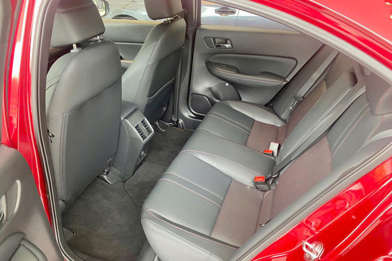 Nội thất ghế bọc da đen cùng đường viền chỉ đỏ (RS) tương phản như một điểm chấm phá hấp dẫn thị giác, góp phần tôn lên sự mạnh mẽ và phóng khoáng cho chủ nhân. Nhằm mang lại sự tiện nghi tối đa cho khách hàng, Honda City mới tích hợp thêm nhiều tính năng tiện nghi hàng đầu phân khúc như hệ thống âm thanh 8 loa cho âm thanh trung thực (RS, L), lẫy chuyển số thể thao (RS, L), chức năng khởi động xe từ xa (RS, L).