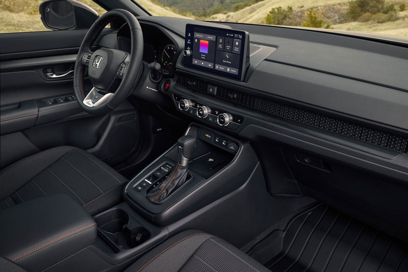 Bên trong khoang cabin, Honda CR-V TrailSport vẫn giữ nguyên bố cục thiết kế của dòng CR-V hiện tại, nhưng được tinh chỉnh một chút để mang nét nhận diện riêng. Trung tâm là màn hình giải trí cảm ứng 9 inch hỗ trợ Apple CarPlay và Android Auto không dây, đi kèm màn hình kỹ thuật số 10,2 inch sau vô-lăng đa chức năng ba chấu, sạc điện thoại không dây, cốp điện, ghế và vô-lăng có sưởi. Đặc biệt, xe sử dụng hệ thống dẫn động bốn bánh toàn thời gian Honda Real Time AWD tích hợp công nghệ kiểm soát thông minh, đảm bảo chiếc CR-V TrailSport sẵn sàng leo đèo vượt suối.