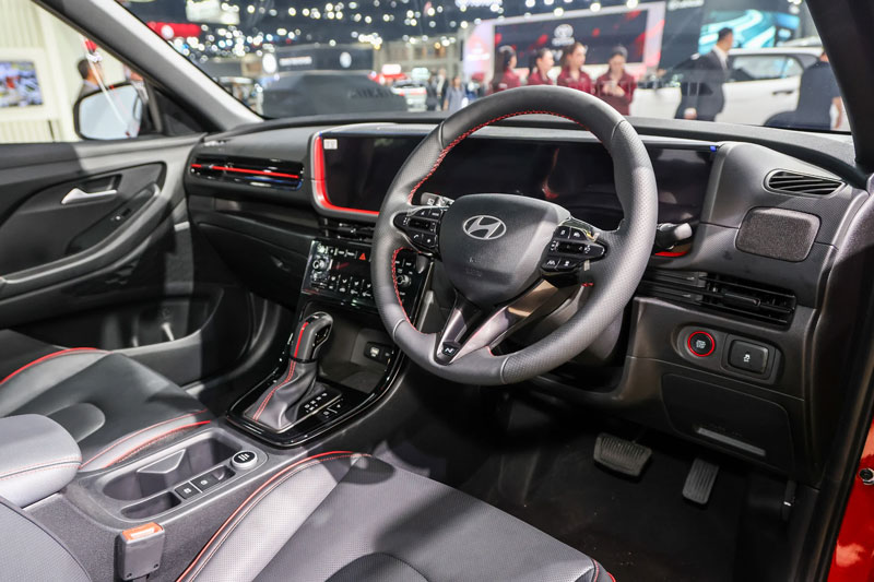 Khoang cabin được bổ sung hàng loạt chi tiết trang trí màu đỏ thể thao bên trong cabin màu đen. Cùng với đó là logo N xuất hiện trên vô-lăng, cần số và ghế ngồi, mang đến cảm giác mạnh mẽ, khác biệt.SUV nàycó cửa sổ trời toàn cảnh có thể mở, hệ thống âm thanh Bose 8 loa, hai màn hình 10,25 inch, ghế da, đèn nội thất LED, điều hòa tự động, Apple CarPlay và Android Auto không dây, sạc không dây cùng nhiều tiện ích khác.