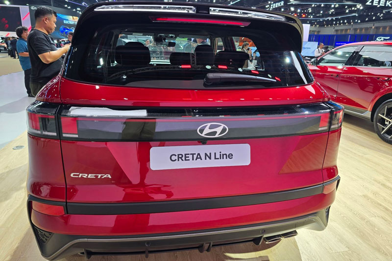 Ở phía sau, cụm đèn hậu LED cũng được kéo dài hết chiều rộng xe, tiếp tục sử dụng thiết kế chữ L ngược ở hai bên. Nếu so với phiên bản cũ với cụm đèn hậu tách rời hình chữ J, thiết kế mới này mang lại sự liền mạch và chắc chắn hơn. Cản sau cũng được làm vuông vắn, táo bạo hơn, tăng thêm vẻ cứng cáp cho tổng thể. Phiên bản N Line còn có thêm bộ mâm hợp kim 18 inch cùng lốp 225/55, đi kèm với cánh gió thể thao nổi bật.