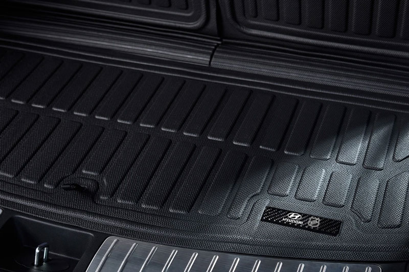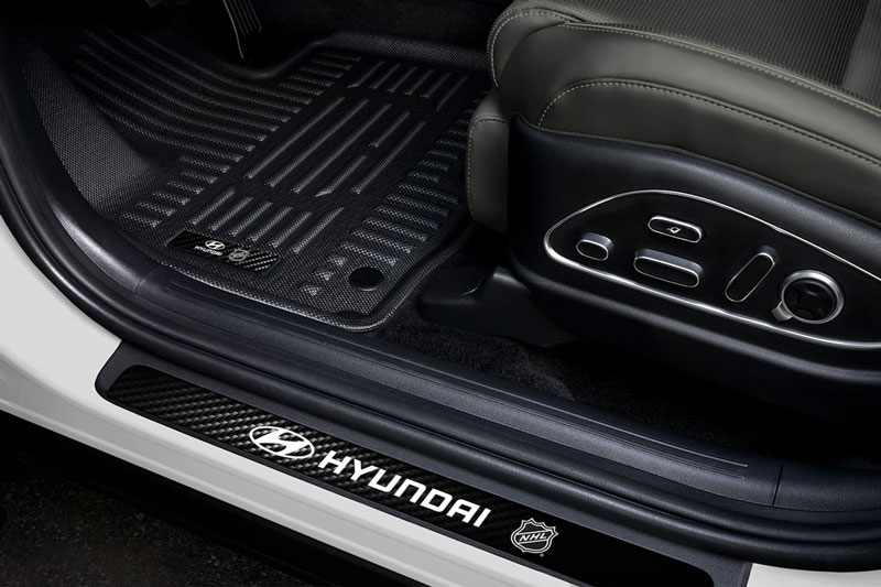 Palisade Hybrid NHL Edition 2026 gây ấn tượng với lớp sơn trắng kem mờ Ultimate Calligraphy sang trọng, đi kèm hàng loạt phụ kiện mang đậm dấu ấn thể thao. Khách hàng có thể tùy chọn bệ cửa, thảm lót sàn thương hiệu, chụp mâm xe, khay để đồ hay lót sàn TuxMat, tất cả đều in logo của 32 đội bóng NHL để người dùng tự do lựa chọn theo sở thích.