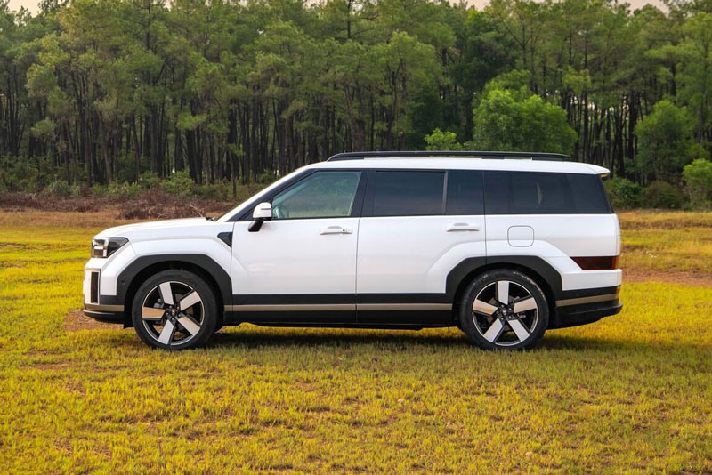 Hyundai Santa Fe 2024 có 3 tuỳ chọn la-zăng với kích thước 18, 20 và 21 inch với các thông số lốp tương ứng lần lượt 235/60 R18, 255/45 R20, 245/45 R21. Phiên bản Caligraphy được trang bị lazang đa chấu 21 inch tạo hình đẹp mắt, các phiên bản phiên bản còn lại sử dụng mâm 18 và 20 inch thiết kế khoẻ khắn với những nan lớn. Xe được trang bị giá nóc có khả năng tải đồ tối đa 100 kg, cũng như tạo thêm vẻ việt dã khoẻ khoắn cho Santa Fe. Bên cạnh đó xe có móc tay ẩn ở cột chữ C giúp người sử dụng dễ dàng leo lên tháo dỡ, lắp đặt đồ trên nóc xe.