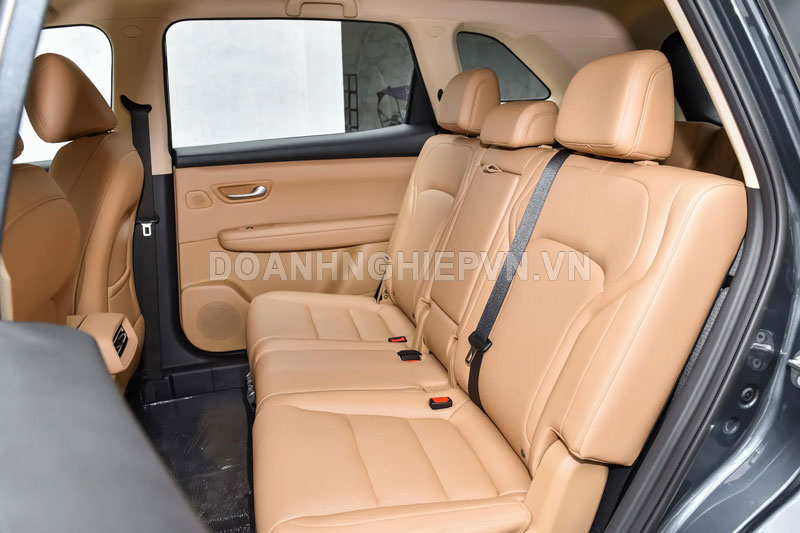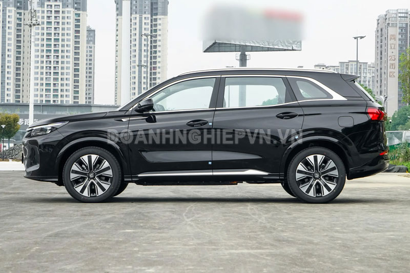 Ở phần thân xe, thiết kế phẳng hiện đại đi kèm bộ mâm 5 chấu kích thước 19 inch mang đến diện mạo mạnh mẽ. Các đường gân nổi bật dưới cửa xe không chỉ tạo điểm nhấn mà còn tăng thêm vẻ cứng cáp. Phía sau, xe được trang bị cụm đèn hậu LED kéo dài xuyên suốt, kết hợp với cánh gió và viền bạc tạo cảm giác phân tầng rõ rệt, giúp phần đuôi xe trở nên ấn tượng hơn.