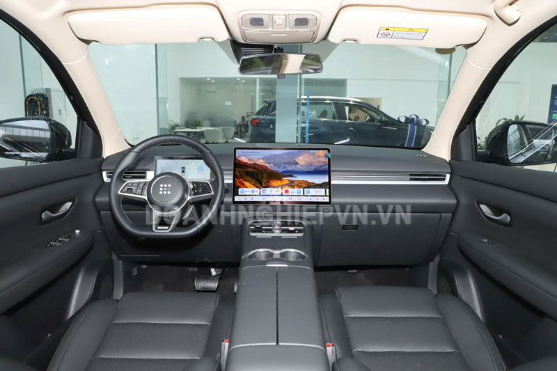 Khoang nội thất của Blue Electric E5 Plus phiên bản mới mang đến 2 tùy chọn màu sắc sang trọng gồm nâu óc chó và đen obsidian. Xe được trang bị bảng đồng hồ kỹ thuật số LCD toàn phần cùng màn hình điều khiển trung tâm nổi 15,6 inch, mang lại trải nghiệm hiện đại và tiện dụng. Đặc biệt, hệ thống buồng lái thông minh Huawei HiCar 4.0 được tích hợp, cho phép kết nối và điều khiển dễ dàng.
