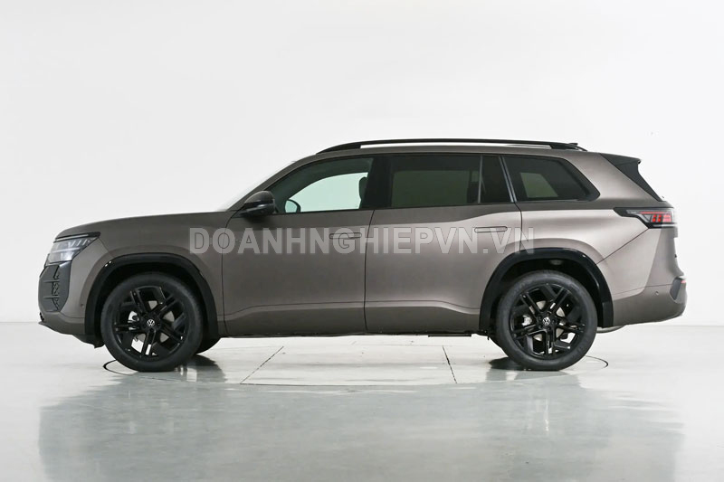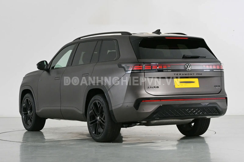 Về kích thước, Teramont Pro có chiều dài 5.158mm, rộng 1.991mm, cao 1.788mm và chiều dài cơ sở đạt 2.980mm. So với đời cũ, SUV này dài hơn 106mm, rộng hơn 2mm và cao hơn 15mm. Xe cũng lần đầu tiên sử dụng tay nắm cửa ẩn, kết hợp cùng nhiều chi tiết sơn đen như gương chiếu hậu, giá nóc, khung cửa sổ, mâm xe và chắn bùn, tạo nên diện mạo thể thao và hiện đại hơn.