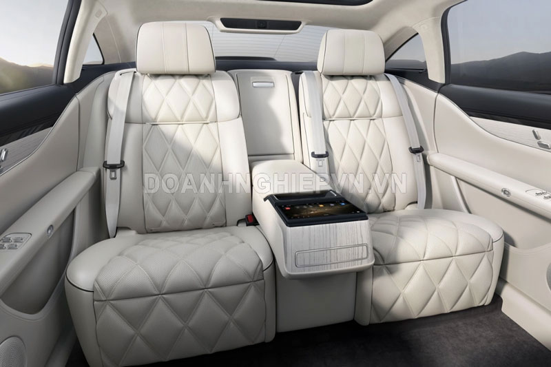 Hàng ghế sau tiếp tục được trang bị ghế không trọng lực, tích hợp bàn làm việc nhỏ và tủ lạnh mini. Đặc biệt, ghế có thể điều chỉnh độ ngả, đi kèm bệ để chân, tính năng sưởi, thông gió và massage tiêu chuẩn, giúp hành khách tận hưởng cảm giác thư giãn tối đa trên mọi hành trình.