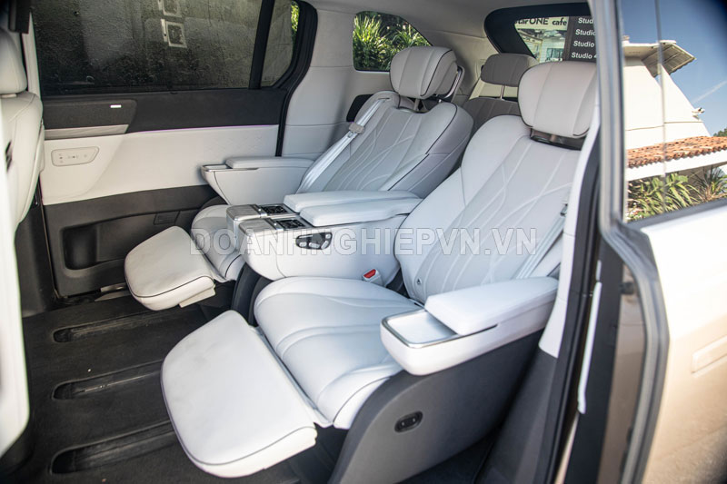 Khoang nội thất tiếp tục là điểm ăn tiền. X9 sở hữu cấu hình 2+2+3 chỗ ngồi, trong đó hàng ghế thứ hai được nâng cấp thành ghế không trọng lực có massage 16 điểm, tích hợp cả màn hình giải trí khủng 21,4 inch - lớn nhất trong phân khúc. Ngoài ra, còn có tủ lạnh mini 10,8 lít, ổ cắm điện 220V, sạc không dây 50W kép và bàn gập tiện lợi, đúng chuẩn “nhà di động” sang chảnh. Vật liệu nội thất cũng được cải tiến để mang lại cảm giác cao cấp hơn.
