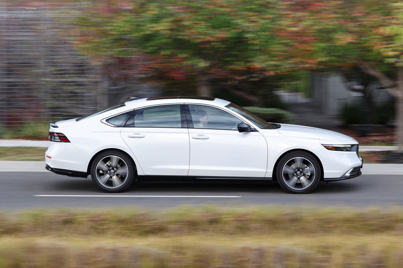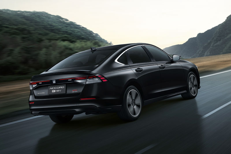Ngoại thất của Honda Accord e:HEV mới được tinh chỉnh theo hướng thanh lịch nhưng vẫn thể thao, với cản trước, cản sau và hông xe sơn đồng màu thân xe, trong khi các chi tiết trang trí ở cụm đèn pha được đổi sang tông trong suốt hoặc đen bóng. Phiên bản e:HEV RS tạo sự khác biệt bằng hốc gió cản trước màu đen cá tính.