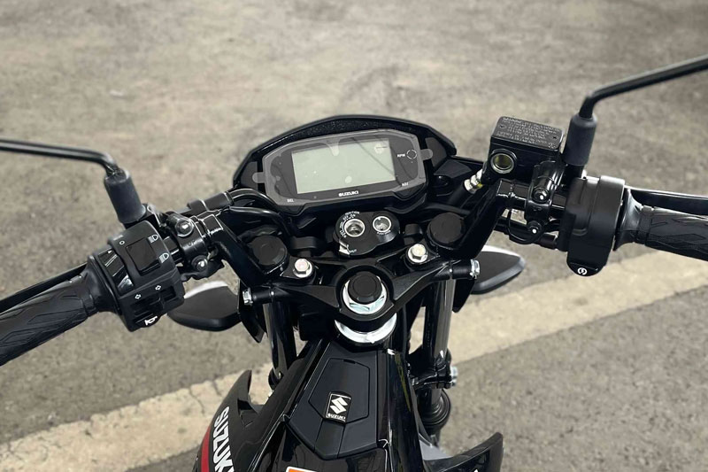 Khung sườn nhẹ nhưng chắc chắn, giúp Suzuki Satria F150 linh hoạt và ổn định ngay cả khi di chuyển trên những cung đường phức tạp.Cảm biến nghiêng tự động ngắt động cơ khi xe nghiêng quá 65 độ. Hộc chứa đồ tiện lợi cùng ổ khóa nắp trập an toàn, đáp ứng nhu cầu sử dụng hàng ngày. Đồng thời, xe côn tay này còn có cổng sạc USB.