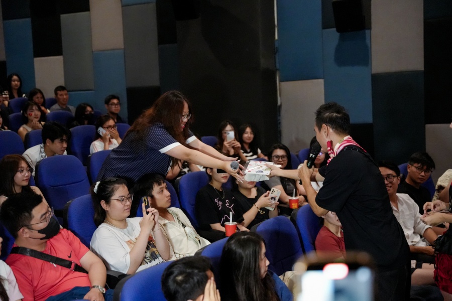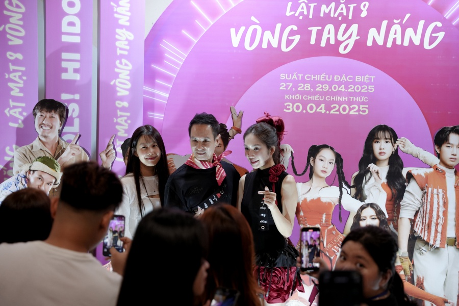 Đoàn phim "Lật mặt 8: Vòng tay nắng" chụp hình lưu niệm với khán giả trong buổi chiếu sớm