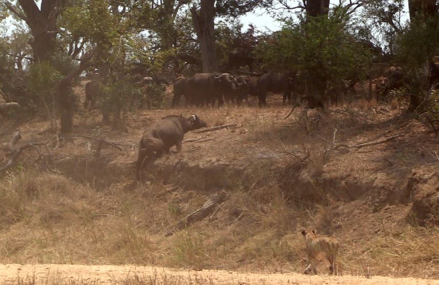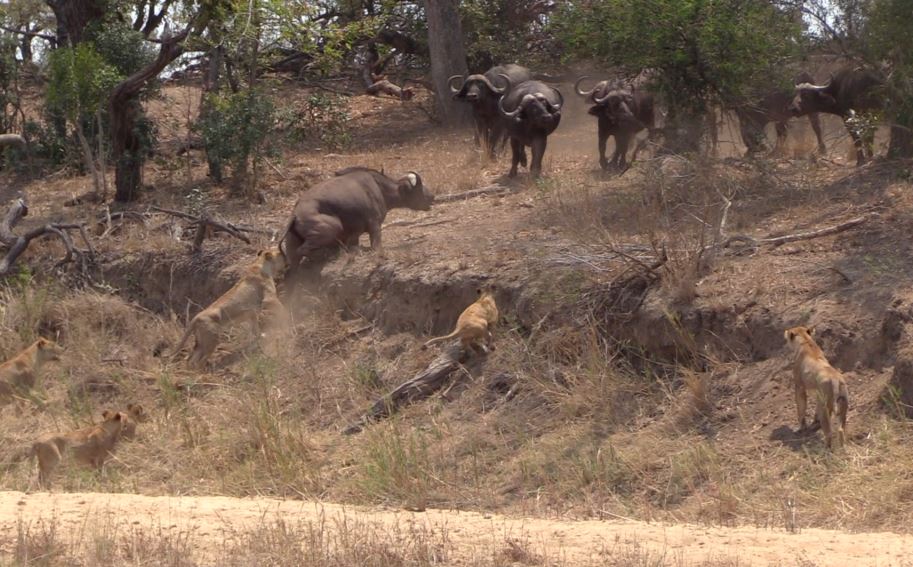 Trong khoảnh khắc căng thẳng, có vẻ như đàn trâu đã thành công trong việc đẩy lùi cuộc tấn công mà không phải chịu bất kỳ tổn thất nào. Nhưng một sự cố bất ngờ đã thay đổi cục diện.