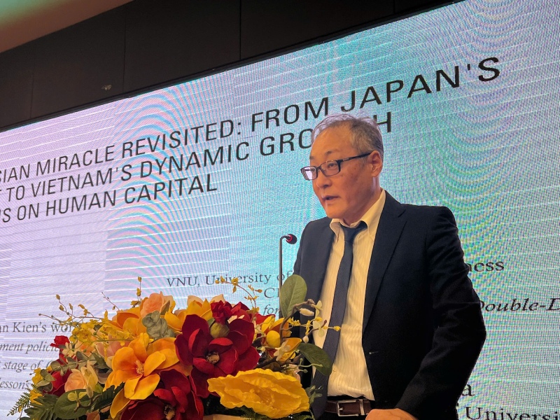 PGS Niimi Tatsuya chia sẻ, mô hình “Đàn ngỗng bay” (Flying Geese Paradigm), trong đó Nhật Bản tiên phong công nghiệp hóa, các quốc gia khác tiếp bước, học hỏi và cải tiến. Việt Nam đang ở vị trí thuận lợi trong chuỗi này, nếu tiếp tục chú trọng vào giáo dục, đào tạo nghề và học tập suốt đời để thích ứng với chuyển đổi số.
