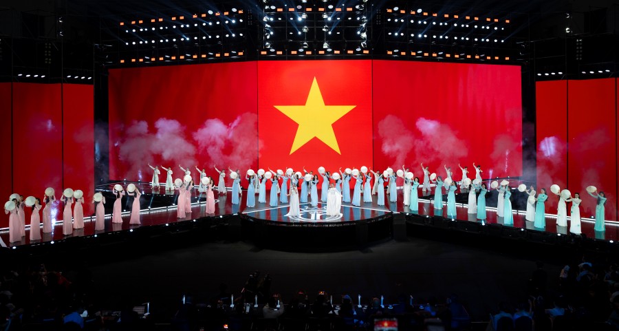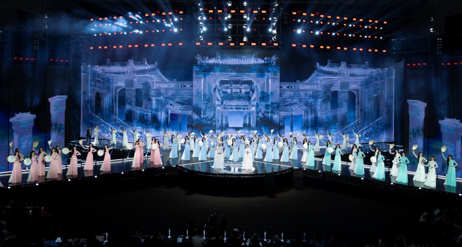 Bám sát chủ đềRạng rỡ Việt Namvà bốn trụ cột Nhan sắc - Văn hóa - Trí tuệ - Cống hiến, đêm chung khảo Hoa hậu Việt Nam đưa khán giả đến với không gian văn hóa đầy tính nghệ thuật thông qua sân khấu lấy cảm hứng từ Hoàng thành Thăng Long.