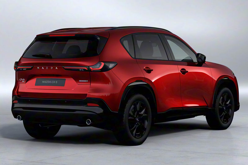 Cản sau của Mazda CX-5 2026 sơn màu đen bóng và hệ thống ống xả ẩn giúp tổng thể xe trở nên tinh tế và năng động. Về kích thước, Mazda CX-5 hoàn toàn mới dài 4.690 mm, rộng 1.860 mm và cao 1.695 mm, chiều dài cơ sở chưa hé lộ.