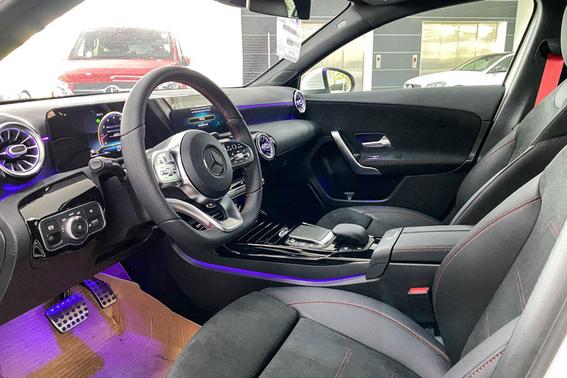 Khoang cabin của A35 cũng không kém phần hiện đại với màn hình kép kết hợp giữa cụm đồng hồ kỹ thuật số 7 inch và màn hình cảm ứng trung tâm 10,25 inch. Xe sử dụng chất liệu da Artico kết hợp Dinamica mang lại cảm giác thể thao và cao cấp, đi kèm với vô-lăng AMG đặc trưng, tạo cảm giác cầm lái chắc chắn và mạnh mẽ.