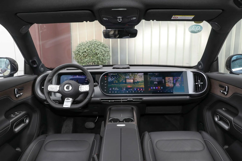Khoang cabin của Smart #5 EHD gây ấn tượng với thiết kế buồng lái bao quanh cùng đảo trung tâm hai tầng, vừa tăng tính tiện nghi vừa tối ưu khả năng chứa đồ. Xe được trang bị cụm đồng hồ LCD 10,3 inch, đi kèm hai màn hình AMOLED 13 inch độ phân giải siêu nét 2,5K, hỗ trợ kết nối đa phương tiện mượt mà.