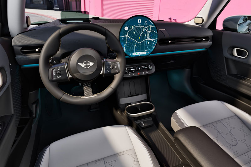 Bước vào bên trong, MINI Cooper 2025 khiến ai cũng phải trầm trồ với khoang nội thất đậm chất "chơi mà chất". Tâm điểm chính là màn hình OLED tròn kích thước 9,5 inch – lần đầu tiên xuất hiện trên ô tô toàn cầu. Màn hình này không chỉ là nơi điều khiển mọi tính năng mà còn là chi tiết thiết kế đậm tính biểu tượng, nằm gọn gàng giữa bảng táp-lô tối giản nhưng không hề nhàm chán.