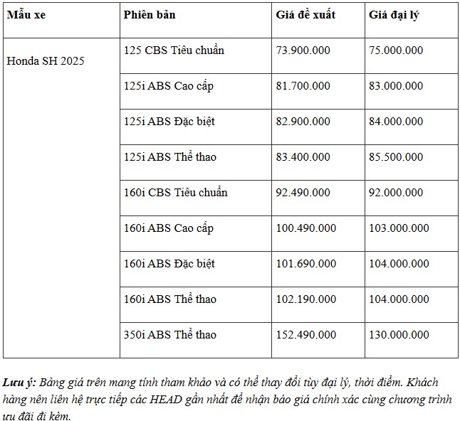 Thị trường xe máy đang chứng kiến mức giảm giá đột phá của dòng xe ga cao cấp Honda SH 2025, với nhiều phiên bản được bán dưới cả giá đề xuất của hãng. Cụ thể, giá niêm yết tại đại lý thời điểm đầu tháng 3 đang giảm nhẹ so với trước Tết Nguyên đán nhờ áp dụng ưu đãi giảm trực tiếp 500.000 – 1 triệu đồng, đưa mức giá bán về sát hoặc thấp hơn khuyến nghị của nhà sản xuất.